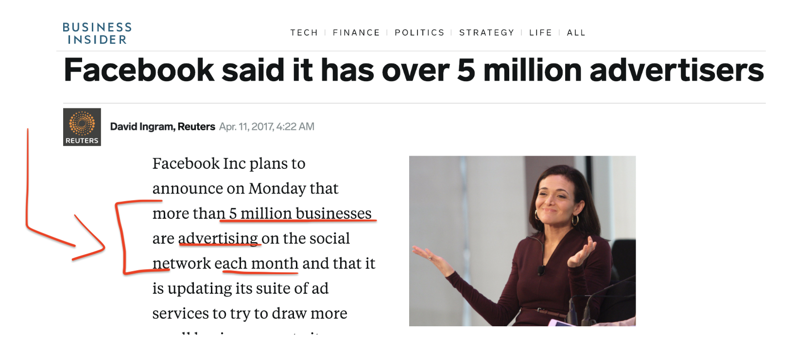 Business insider: כמות המפרסמים בפייסבוק זינקה ב5- מיליון כבר ב- 2017
